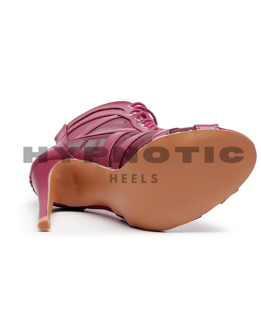 Introducing Hustler - Burgundy, a sleek and daring addition to your dance wardrobe. Made with vegan leather and mesh, this heel offers both style and support. Its strategic heel placement and soft mesh with vegan leather criss cross panelling provide continuous comfort, while the customizable heel heights allow you to hustle with confidence.